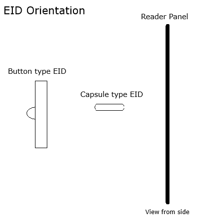 The easiest and most definitive way to test for noise is to use an EID tag. Hold the tag in front of the middle of the panel and slowly move it away from the panel until it stops reading (note that it may not read when very close to the panel). Record this distance. With button tags, position the tag flat with respect to the panel. With long capsule type tags (i.e. sheep tags), position the tag perpendicular with respect to the panel.